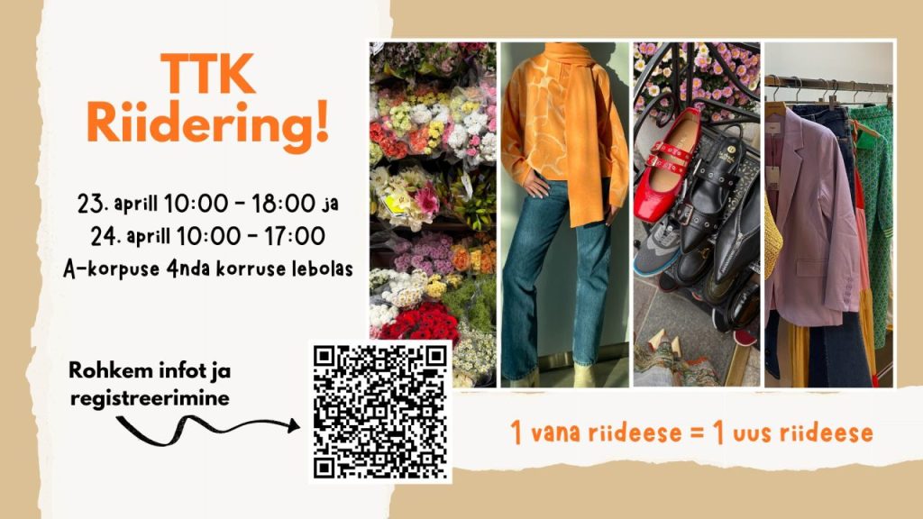 ♻️ Esimene TTK Riidering kutsub riidekappi värskendama! TTK Riidering on jätkusuutlik riietevahetusüritus, mille eesmärk on anda kappi seisma jäänud riietele uus elu.