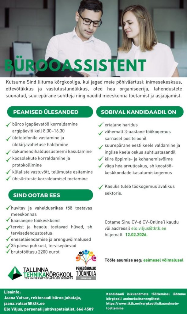 Konkursi korraldab kõrgkooli personalitöötaja üksuse juhilt saadud info põhjal ning ametikohale kandideerijate esialgne analüüs tehakse nõutud kandideerimisdokumentide põhjal.